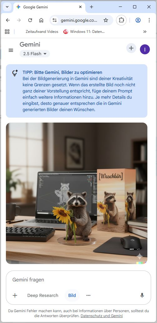 Über Google Gemini hatte ich in meinem Blog bisher noch nichts gepostet, einfach weil ich bisher keinen Anlass sah, Gemini zu verwenden. Neugierig war ich jedoch auf die Möglichkeit, 3D-Figuren als Foto zu erstellen mittels „Nano Banana“.